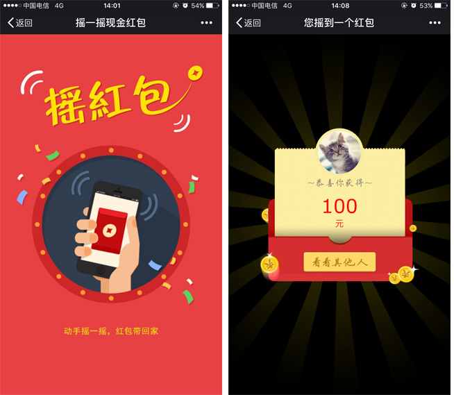 摇红包功能演示