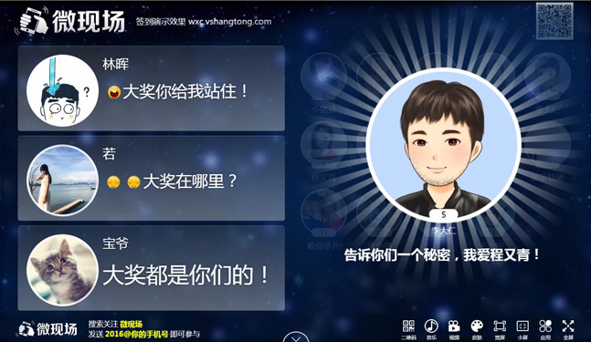 上墙签到同屏地址:http://wxc.vshangtong.com/?ac=wxc_wall_qd&id=17