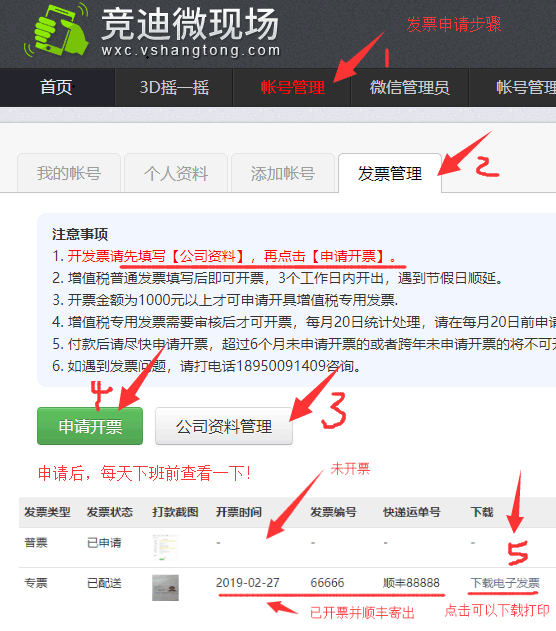请按照下图所示登录后台申请发票,填写信息的时候一定要认真,千万别搞错了。